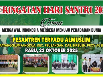 Matangglumpangdua – Pesantren Terpadu Almuslim memperingati Hari Santri Nasional pada Rabu, 22 Oktober 2025, dengan khidmat dan penuh semangat. Mengusung tema “Mengawal Indonesia Merdeka Menuju Peradaban Dunia”, peringatan kali ini […]
